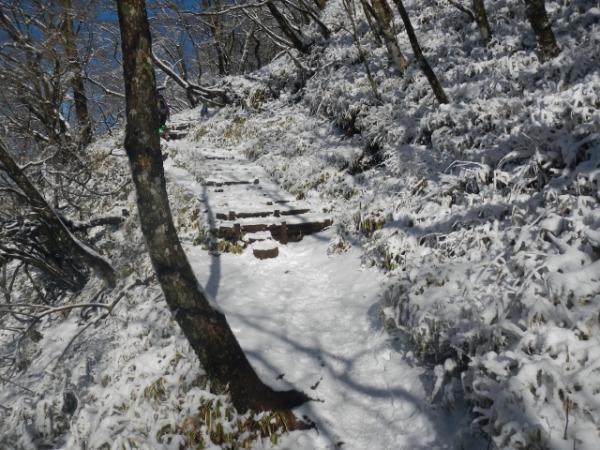 標高1200mごろから道に雪があらわれ塔ノ岳山頂は真っ白でした。