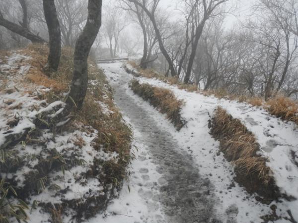 - 大倉尾根1200mごろから雪が付きはじめていました。