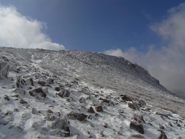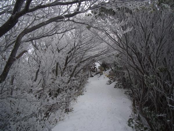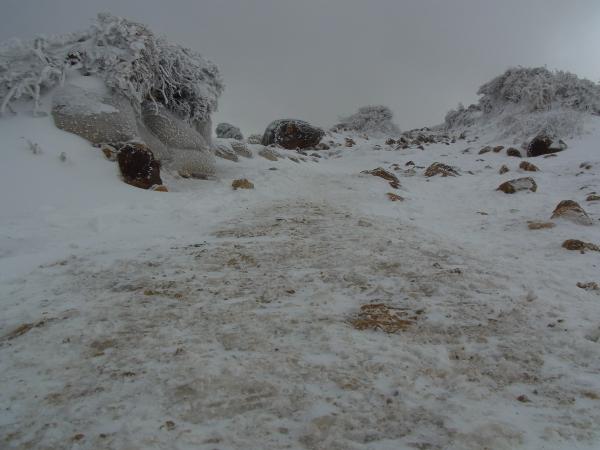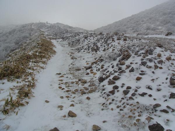 - 牧の戸登山口から久住山までの道は、ほぼ凍っているような状態。アイゼン必須です。