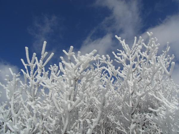 ゴール直前になるとすっかり晴れて、樹氷と青空がとても美しかったです。