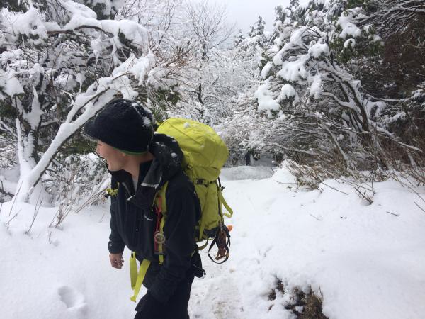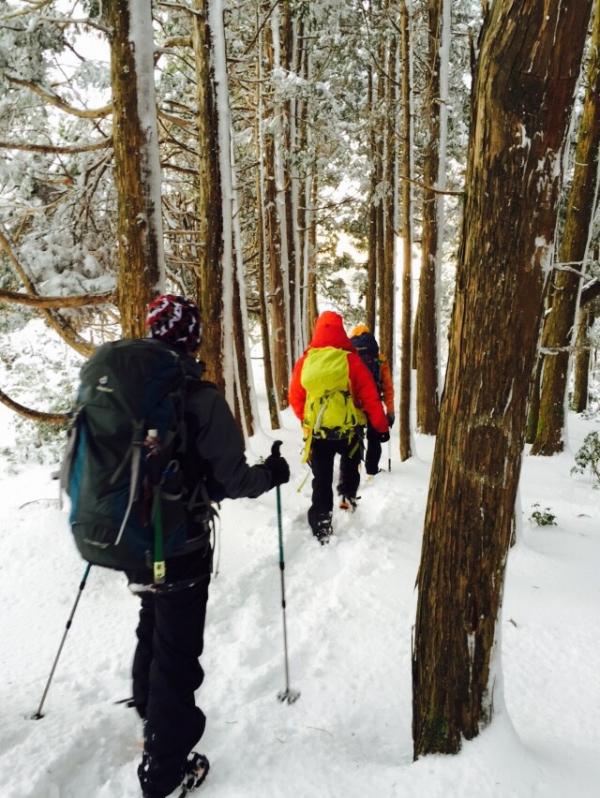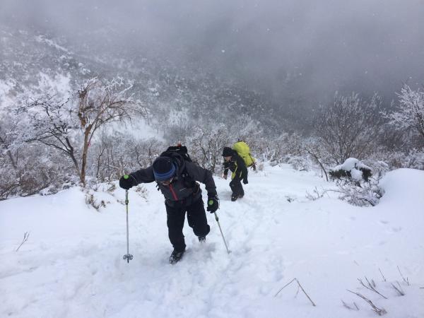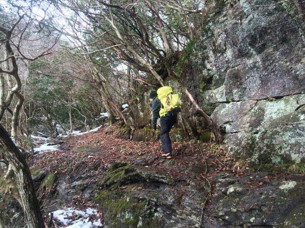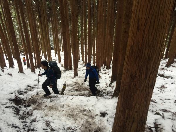 - 登りだしは全く雪が無く岩と泥、雄滝を越えて樹林帯に入ったあたりから徐々に雪が増えてきます。