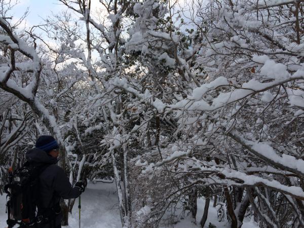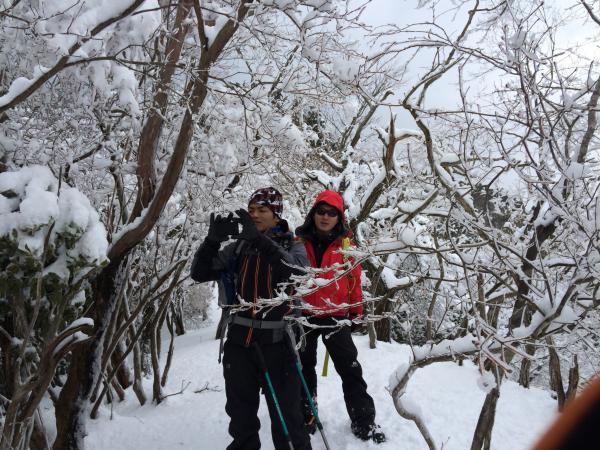 登りは特に危険個所もなく山頂直下の急登を除けばのんびり雪景色を楽しめました。
