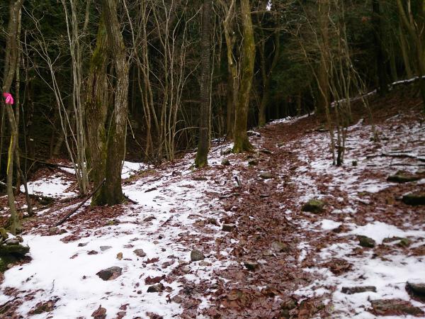 全体的に雪は少なめですが、標高が上がるとカリカリに道が凍っています。