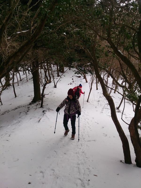 六合目あたりから雪が出てきます。軽アイゼンがあったほうが安全です。