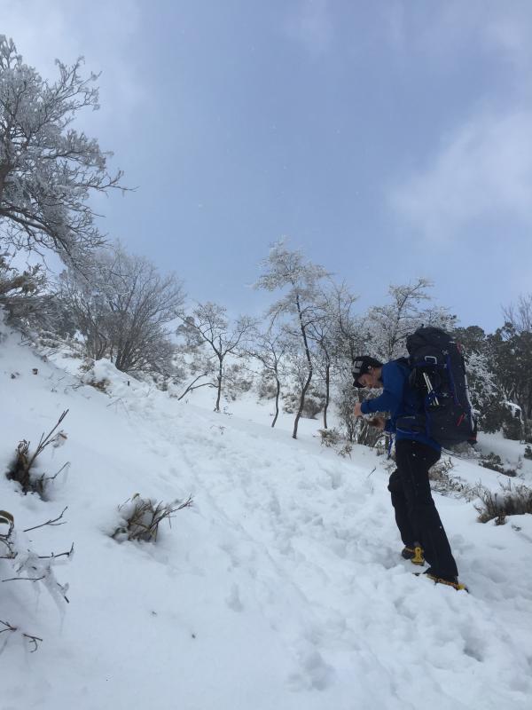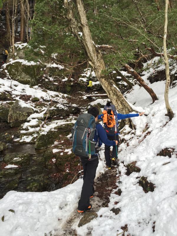 - 登山口に雪はありませんが、標高が上がるにつれて雪が積もってきます。急登な上に雪が積もると軽アイゼンでも難しい場所があります。冬靴に10本.12本アイゼンをお勧めします。