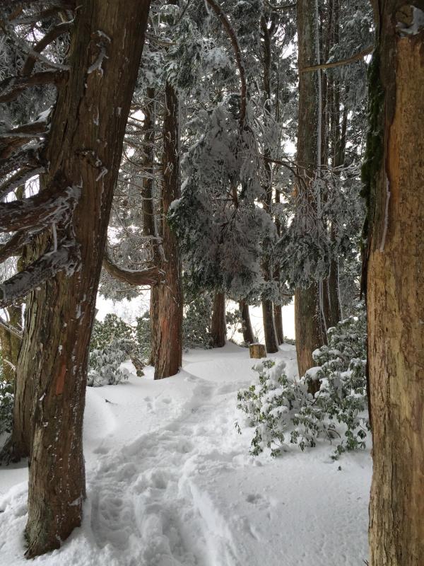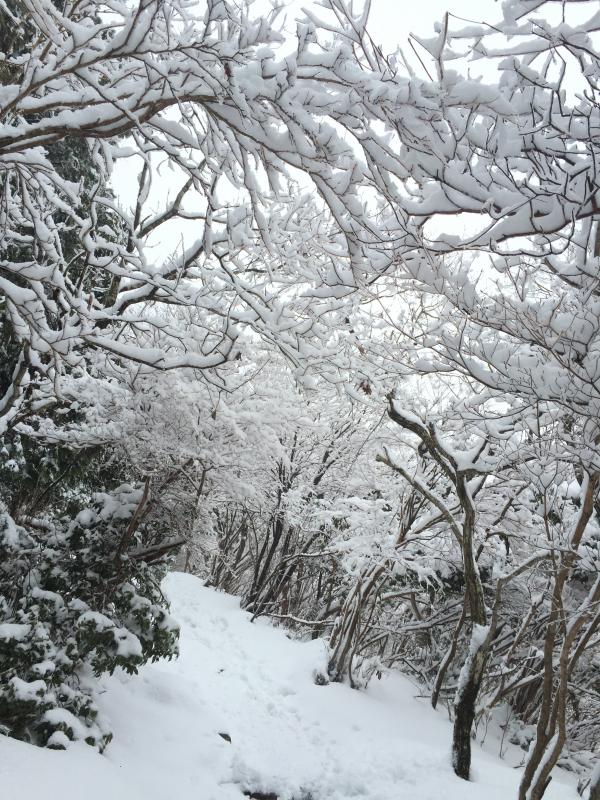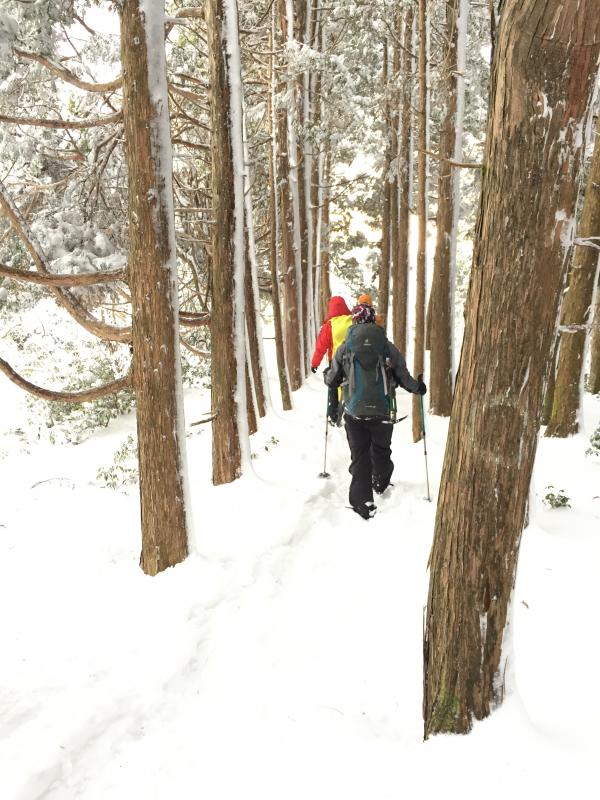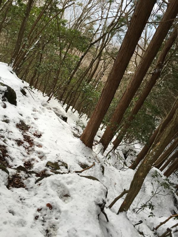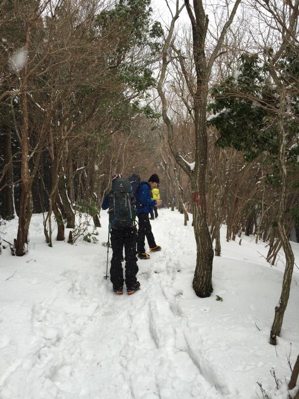 登山口までは雪もなく、道も凍ってなかったため、フル装備の雪山セット(スノーシュー、ストック、ピッケル、アイゼン)が無駄か!と思いましたが、途中からしっかりと雪が積もっておりました。