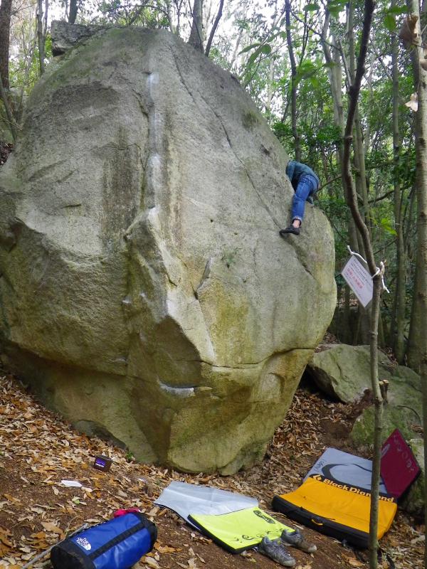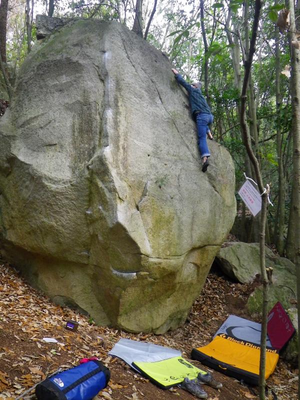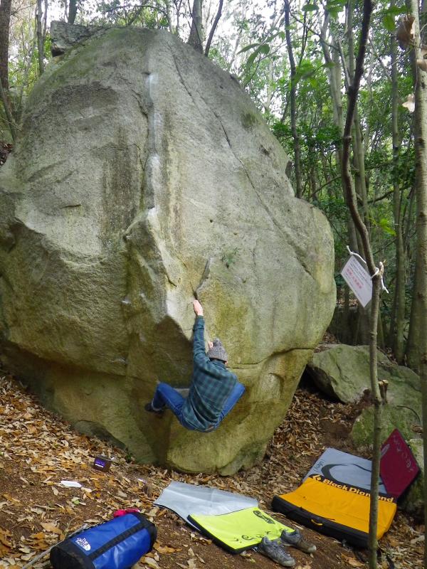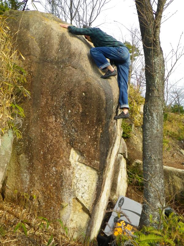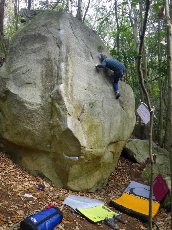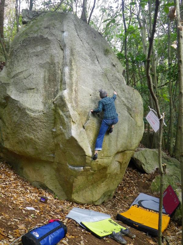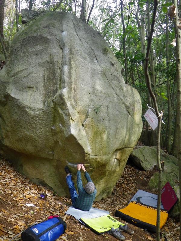 - 西のエリアの一番遠いボルダーで、駐車スペースから歩いて10分ぐらいです。