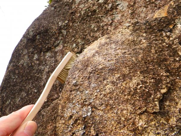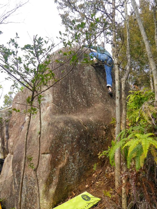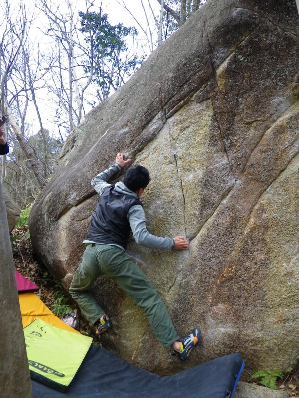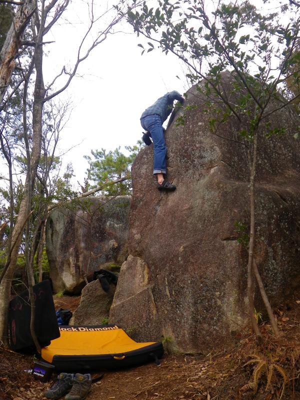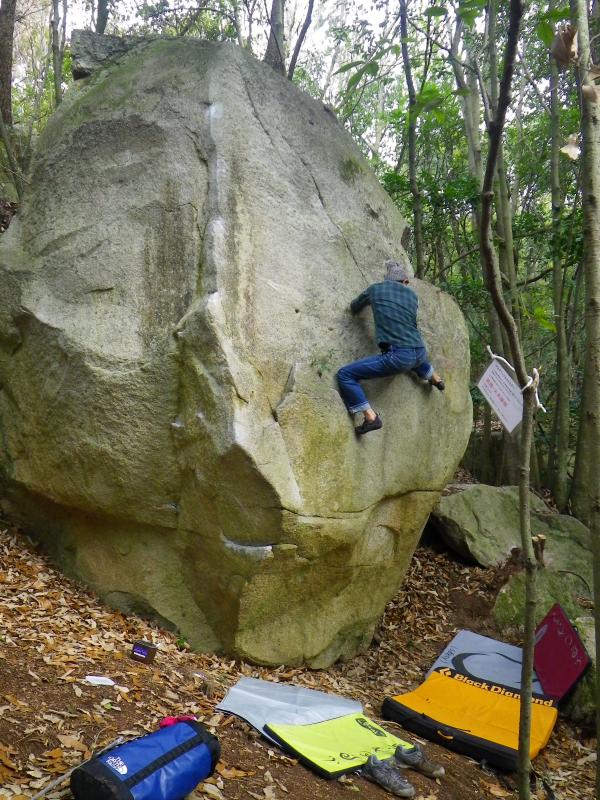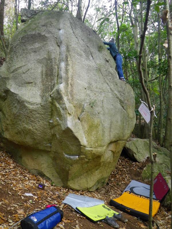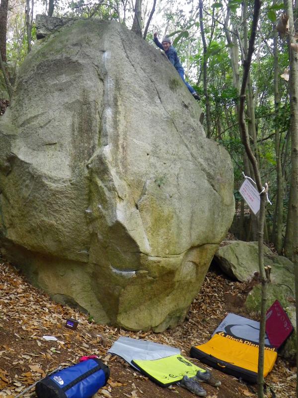 - 西のエリアの一番遠いボルダーで、駐車スペースから歩いて10分ぐらいです。