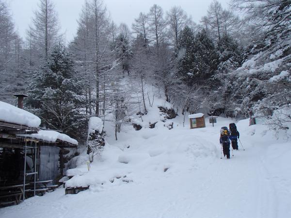 予定では裏同心ルンゼへ行くつもりでしたが、事前情報で、すでに雪で埋まっているかもしれないということだったので、急遽予定を変更して初日はジョウゴ沢へ行くことにしました。