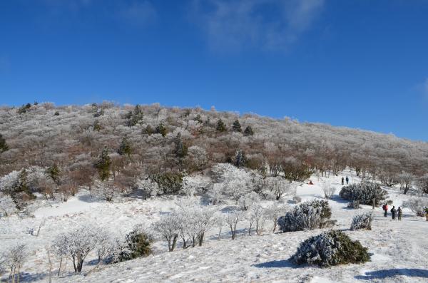 霧氷が楽しめる期間はだいたい3月上旬ぐらいまで。