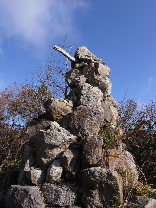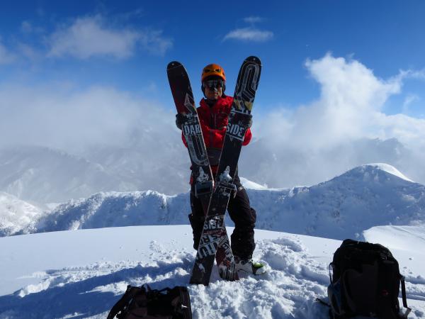 尾根は地形図通りかなり細くて急で難儀したが、板のまま根性で登り上げる。