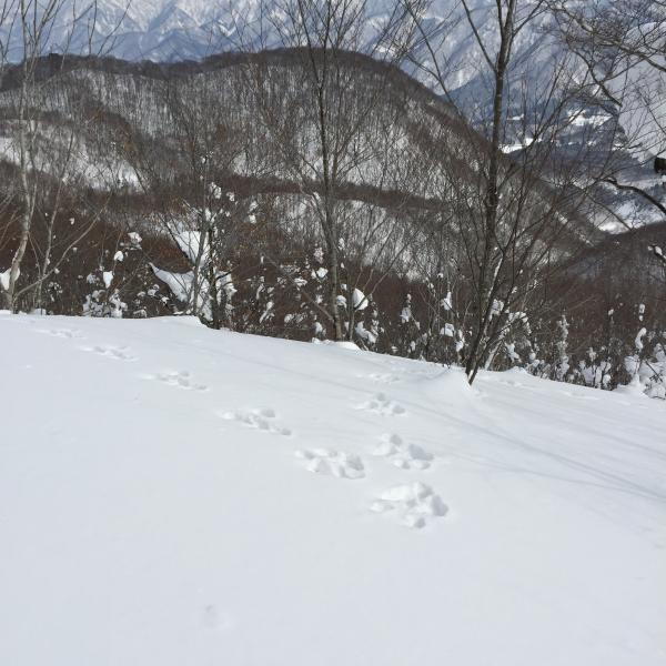コース上はスノーシューのトレースはなく、所々にスキーの跡が。
