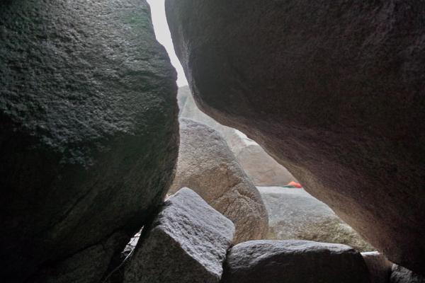気温は4度で快適でした。ずっとあられが降っていましたが、氷は岩から転がり落ち、地面でとけていたので、さほど問題ではありませんでした。
