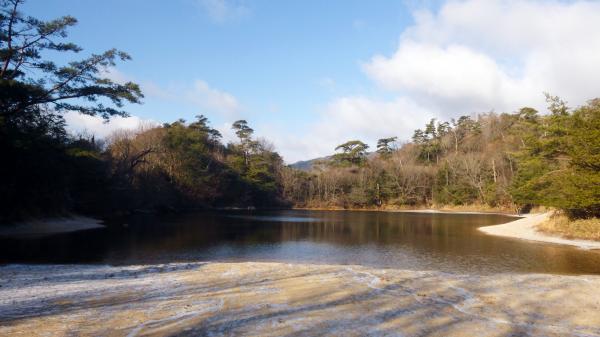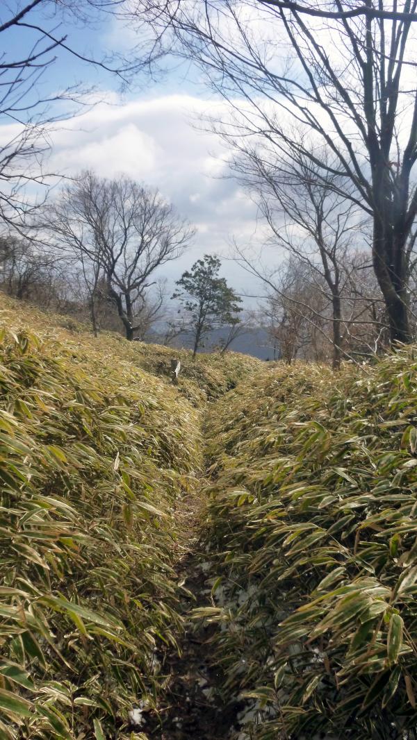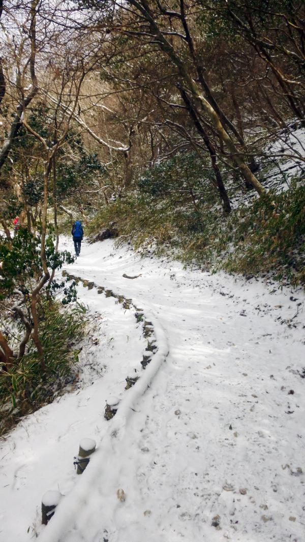 - 雨が峠あたりから雪が積もっており、日陰の部分は凍っていました。