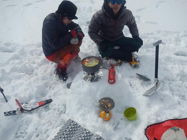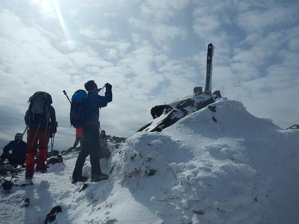 先に中岳に登り天狗が城経由でまた御池へ戻って今日の昼食。オールウェザーブランケットを広げ、池の上に積もった雪をかき集めテーブルを作成。ガソリンバーナーでキムチ鍋を作り、締めはラーメン。終始風もなく穏やかな日和で本日もマッタリ昼食できました!
