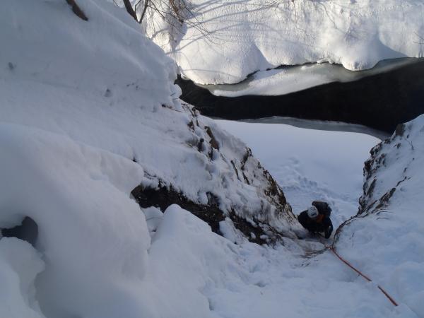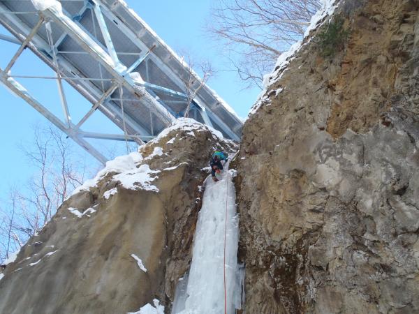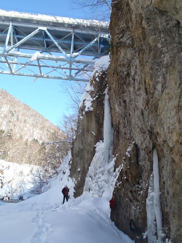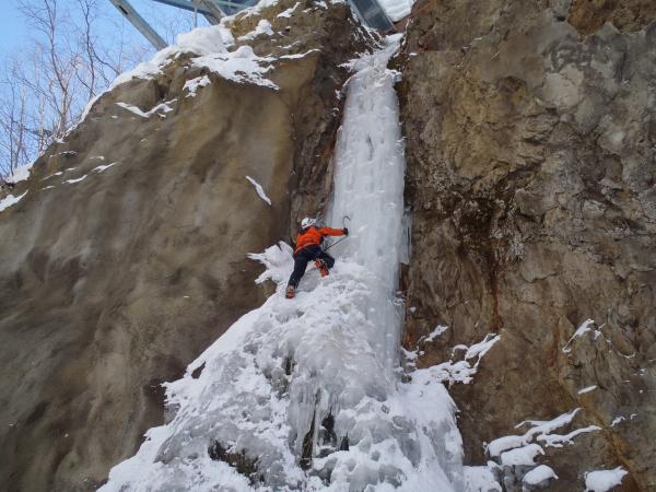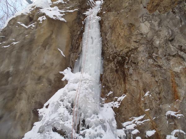 - 一応登れるが上部が氷結状態が悪くトップロープに留めといた方が無難です。