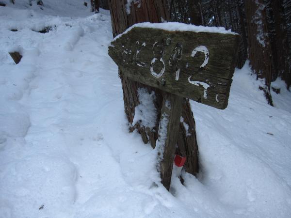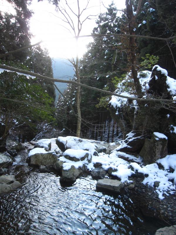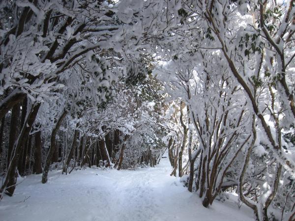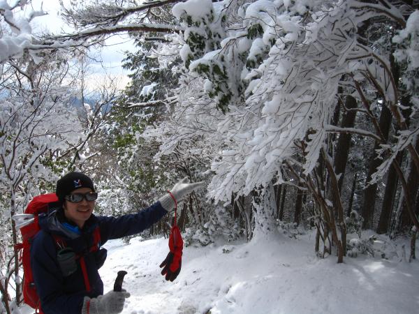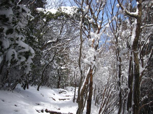 先月行ったスタッフは、登山入口には全く雪がなかったと言っていましたが、数日の冷え込みで、登山口から雪がみえていました。