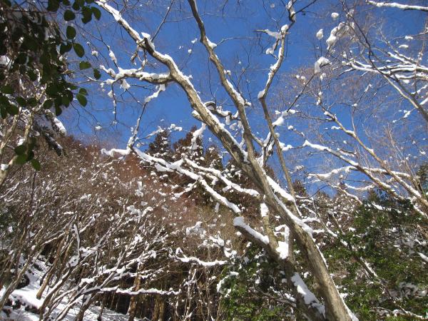 天気も良く気温も高かったので、木に乗っている雪が上から落ちてくることもしばしば。