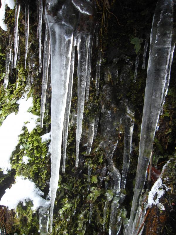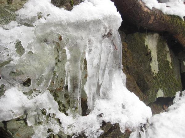 雌滝・雄滝を過ぎてからは、軽アイゼンが必要です。(ストックもあるとかなり助かりました)