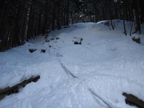 所々、ロープがはってありますが、雪で隠れていたりして、かなり湿っています。