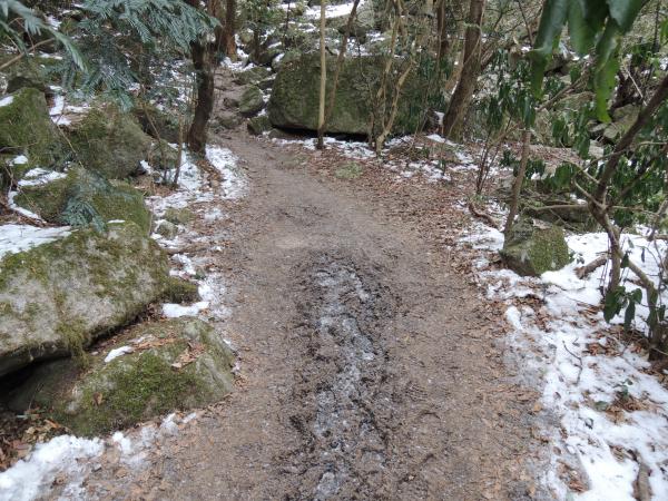 - 風も強く、久しぶりの冷え込みでいつも湿った登山道がしっかり凍って歩きやすくなっていました。