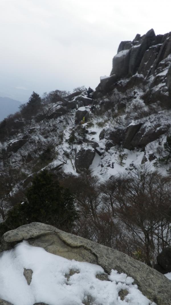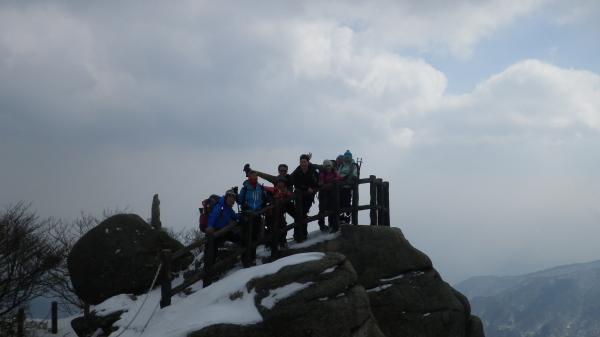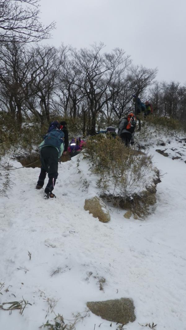 登山道の雪は固められていますが積雪量は多く、中道の早々にアイゼンを装着し安全登山に努めました。