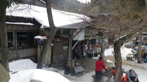 そのまま山頂に向かい記念写真を撮って昼食にしました。栄店の二人はコンロで湯を沸かしカップめんなどを流し込み、浜松チームは山頂レストランで御在所カレーうどんを食べていました。