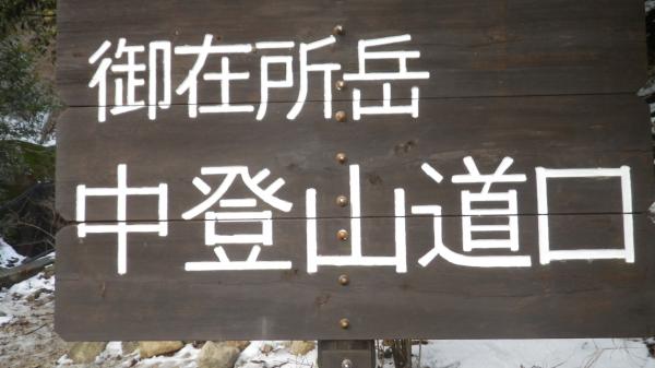 - 登山口早々に積雪。裏道との分岐前にアイゼンを装着。
