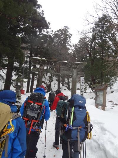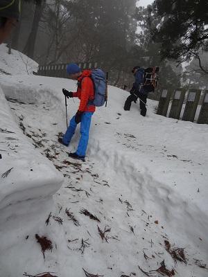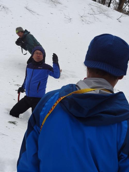 ワカンをを取り付けてラッセル訓練。夏山登山道に合流しました。
