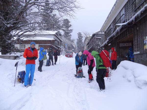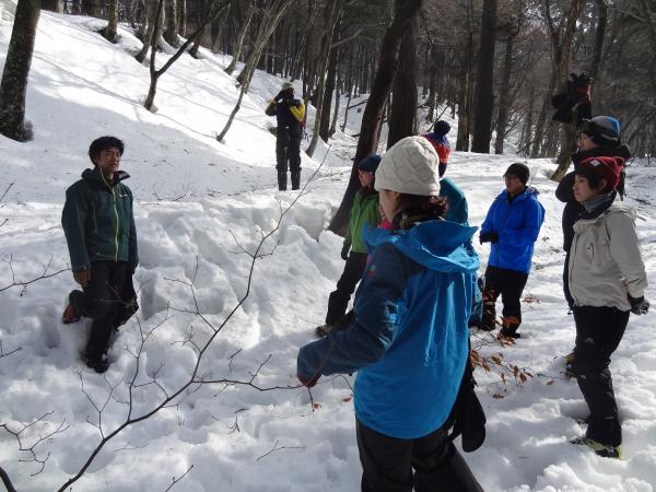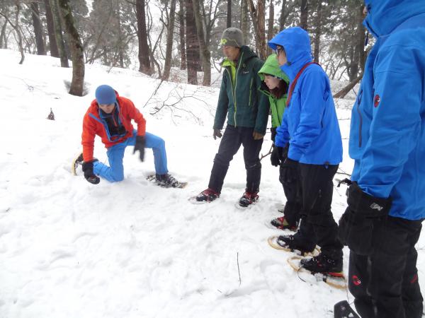 1日目はパッキングの注意事項、ラッセル訓練、スノーシュー、
