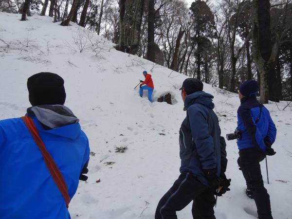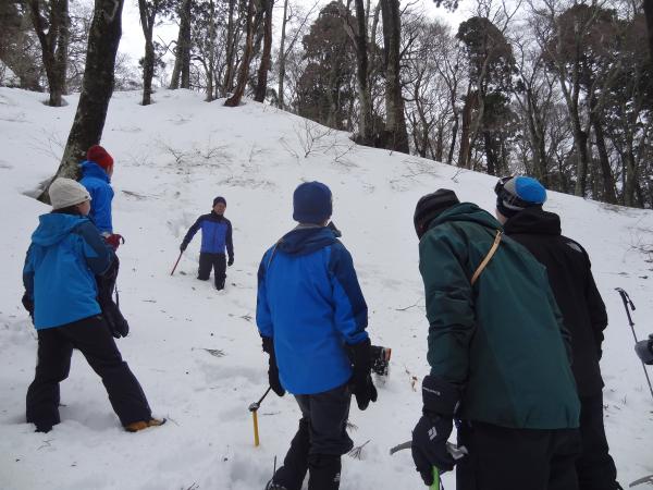 雪崩に巻き込まれた人を探し出す実践訓練行いました。