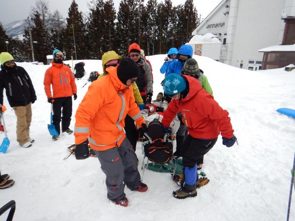 講習前日が大雪となり、当初予定していた八方尾根スキー場山麓のエリアへのアプローチに深いラッセルを強いられる点、実際に雪崩の危険性が高いという判断で、急遽、旧ハイランドスキー場に開催場所を変更(ハイランドホテルの許可を得て実施しています)しました。