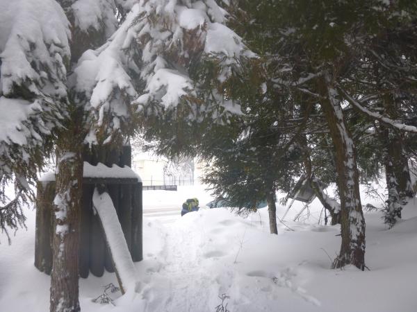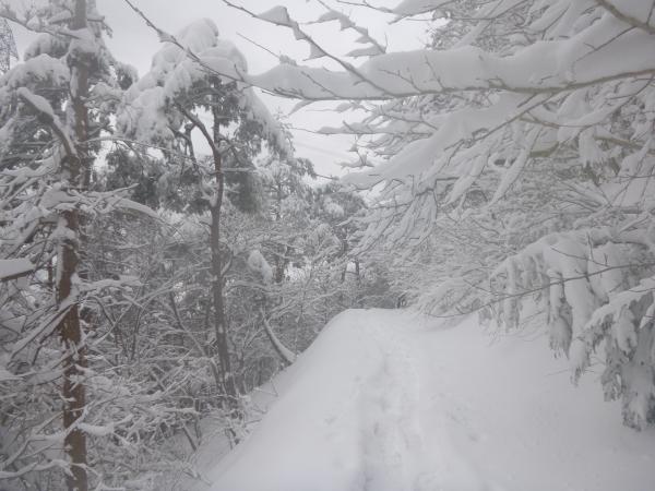 車を置いた横からスノーシューを履ける程の雪でした。途中で斜面をトラバースするところがあって滑りやすかったです。稜線の両側は急斜面となっているので落ちないようにしましょう。