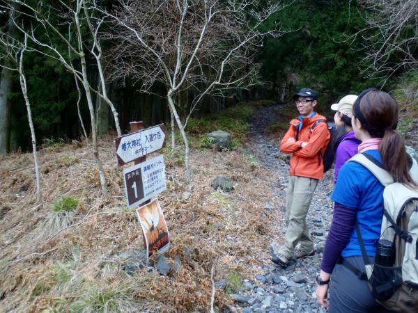 - 椿大神社 ⇒20分⇒ 看板「井戸谷①」 ⇒30分⇒ 井戸谷避難小屋 ⇒20分⇒ 看板「井戸谷⑤」 ⇒10分⇒ 福寿草群生地 ⇒50分⇒ 入道ヶ岳 ⇒30分⇒ 二本松避難小屋 ⇒35分⇒ 看板「二本松①」 ⇒10分⇒ 椿大神社