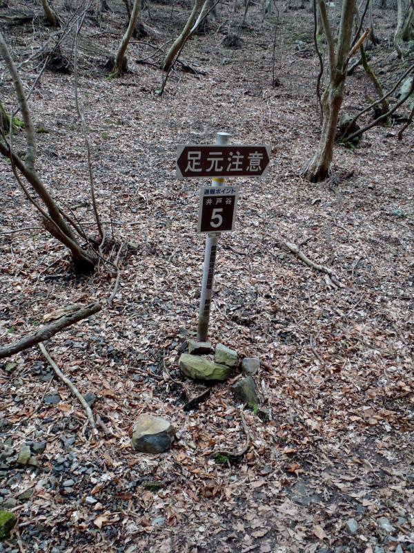 ポイントは『 井戸谷の看板「5」と「6」の間を登山道を外れて、右斜面を登っていく!』です。