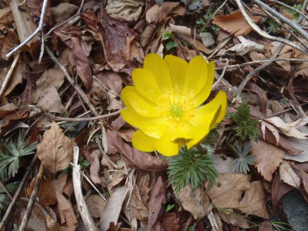 こんな歩きにくい急斜面に本当にあるのかと半信半疑でしたが、福寿草を発見したら全員「おおっ!」と声が上がるほど感動しました。