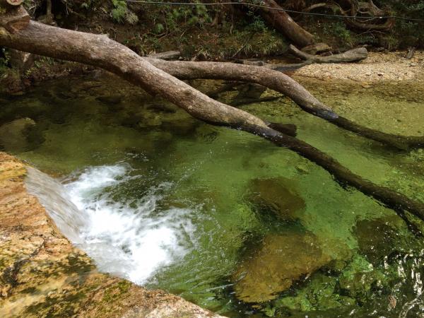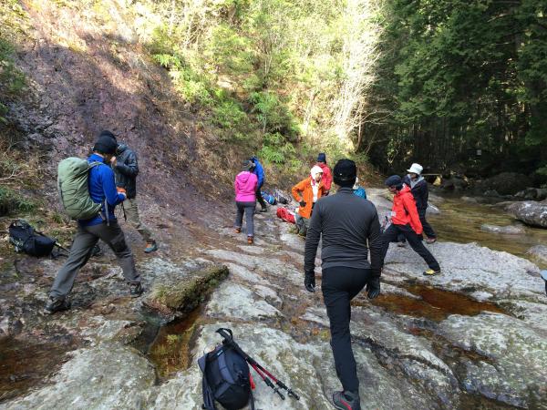 沢を渡ります。一枚岩なので雨の日は鉄砲水に注意。