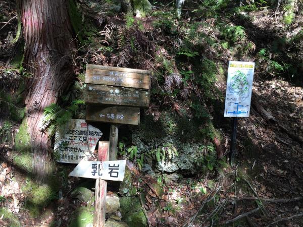 乳岩峡登山口 -25分- 乳岩分岐 -65分- 鬼岩 -9分- 鬼岩乗越 -45分-