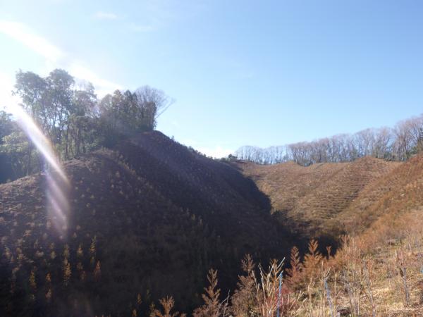 に着きます。自分は登山口から見て一番右側の尾根を進みました。ピークから振り返ると、