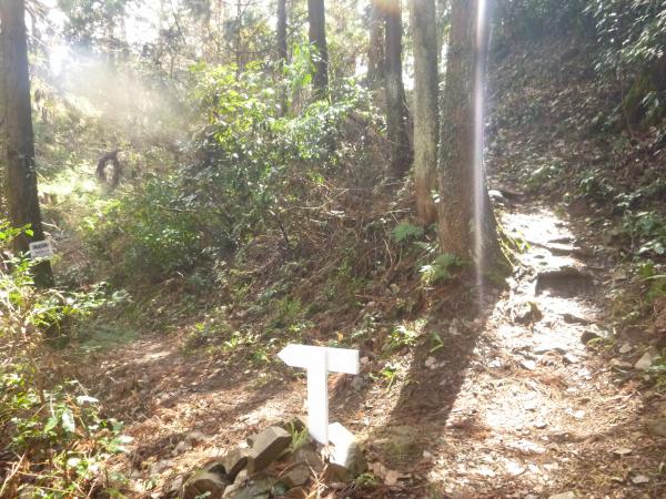 八王子城址に近付くと分岐や作業道が増えてきます。ようやく地図に載っている登山道と