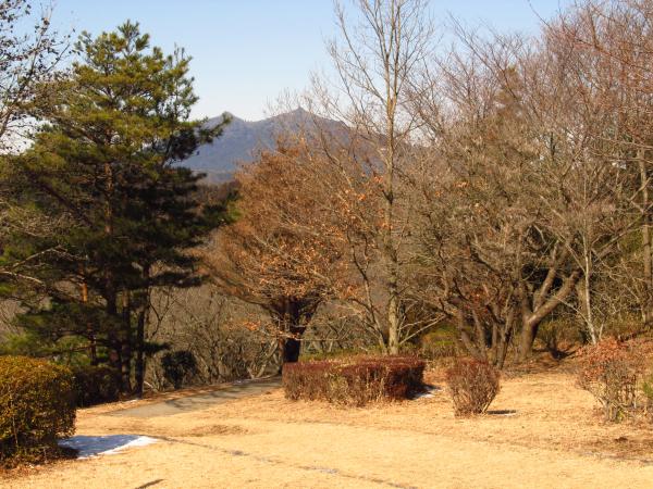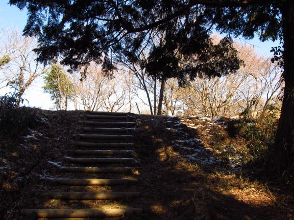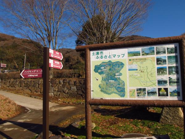 いったん舗装路に出ます。舗装路を左に上がると近道ですが、それは帰りに。右へ歩くとすぐに舗装道路は終わって山道になります。大きく回りながら、登って行くと突然、公園に到着。天気も良く筑波山もくっきり、霞ヶ浦もキラキラです。気持ちの良い所です。