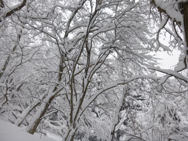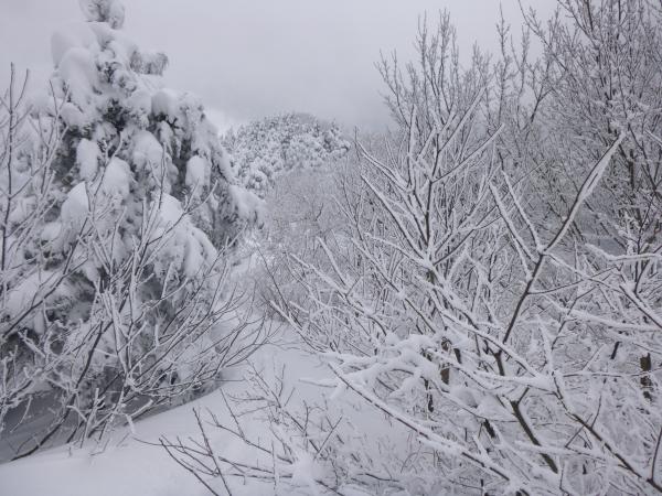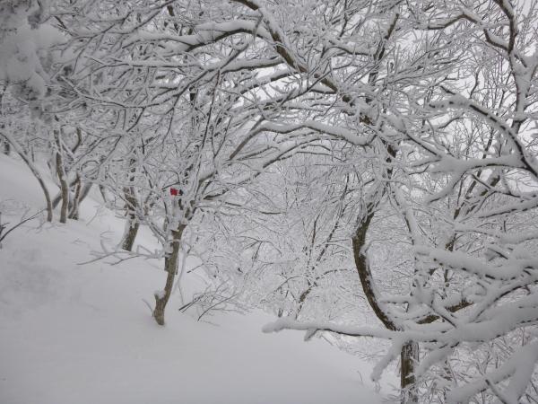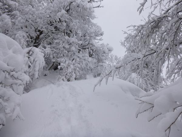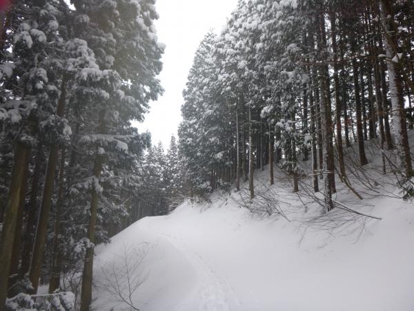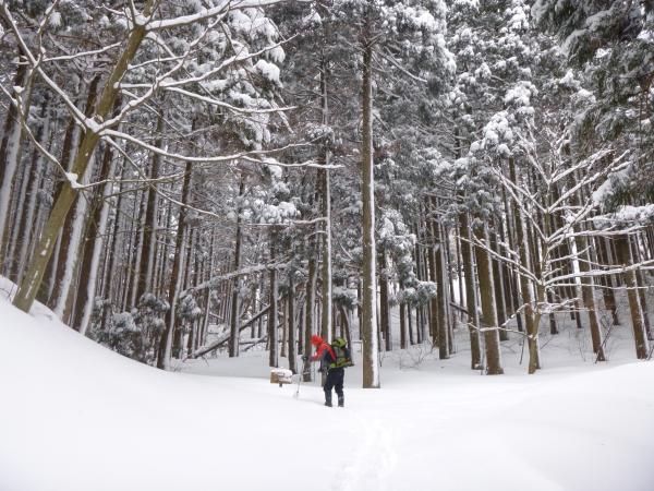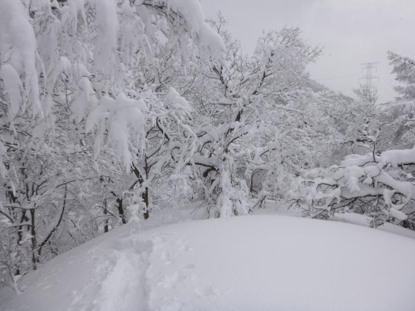 - 寒波で一面雪景色です。踏み跡が無いので ルートファインディングが必要です。
