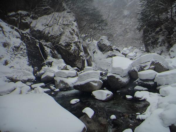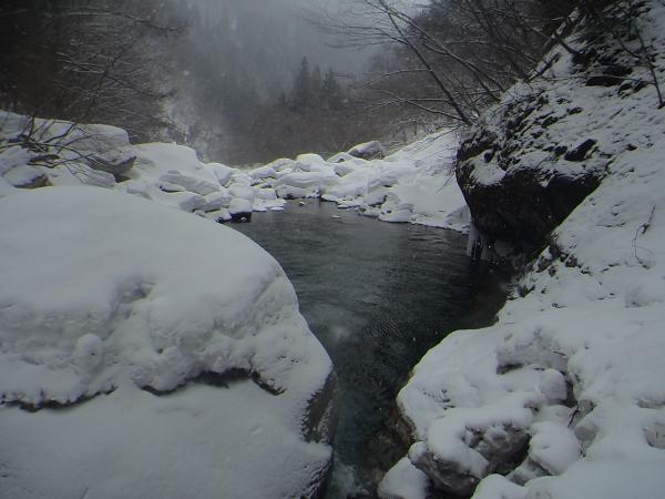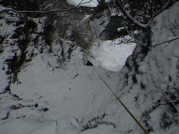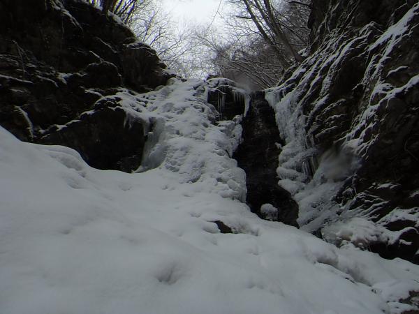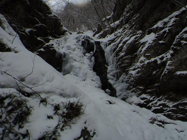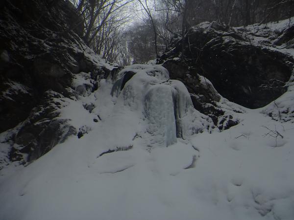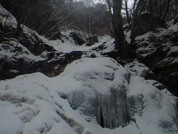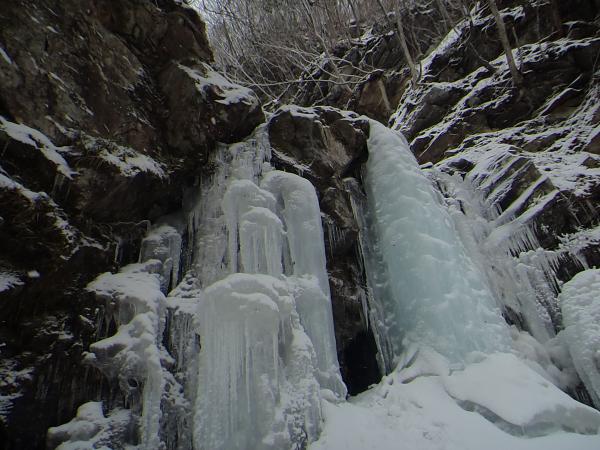 - 最近の気温上昇と雨の影響で溶け始めていました。2月に来るのがベストなようです。C沢は登れD沢が見つからず、違う氷を登りました。ここはばっちり凍っています。渡渉が滑りやすいので注意が必要です。