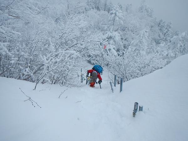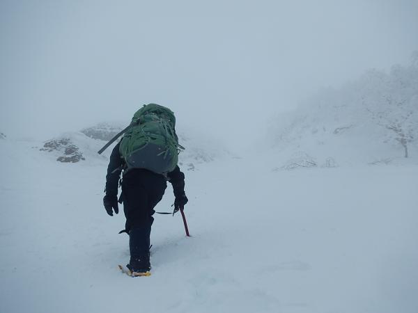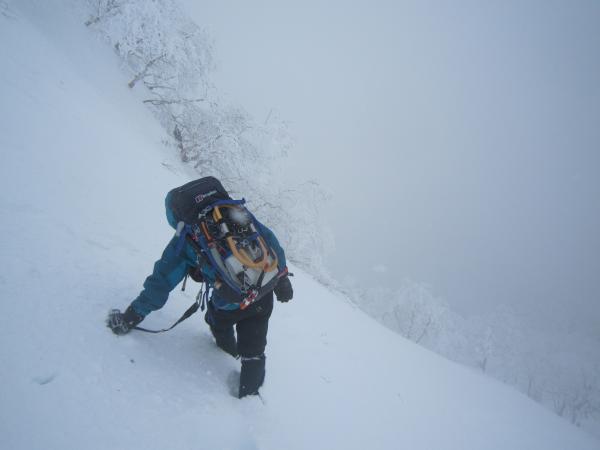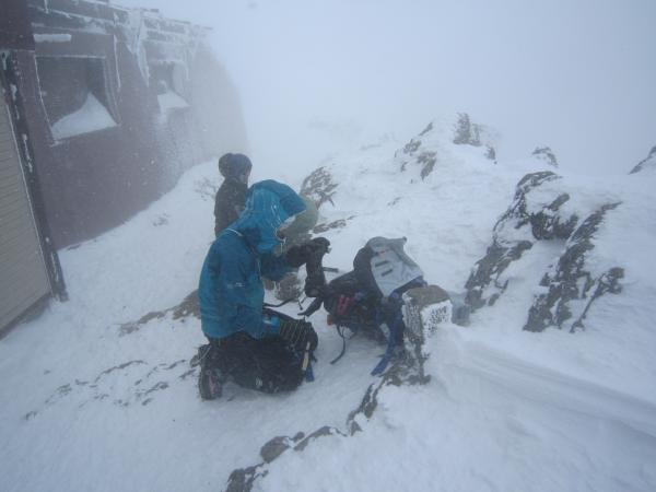 風速は15~20M、かなりの悪条件でした。ホワイトアウトすると、道も分からなくなります。GPSも必ず携帯してください。