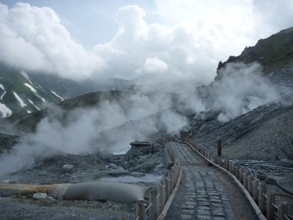 各務原から車を走らせ3時間半。立山駅前の無料駐車場に車を止め、ケーブルカーと高原バスを乗り継いで室堂へ。