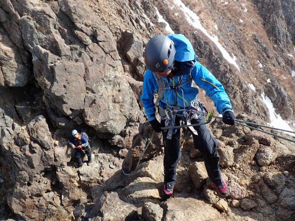 - 東南稜には雪が無く岩登りになった。