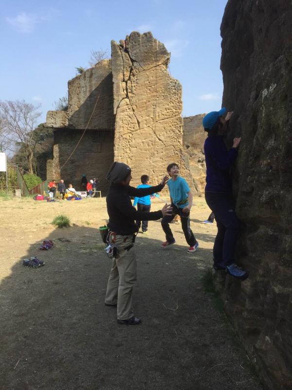 今日もぽかぽか陽気。半袖の人もいました。お昼を過ぎると風が出て寒くなってきます。フリースかインシュレーションジャケット必須です。別のパーティーが連れて来ていた犬と、電光クラックに果敢に挑戦する子供たちが可愛かったです!