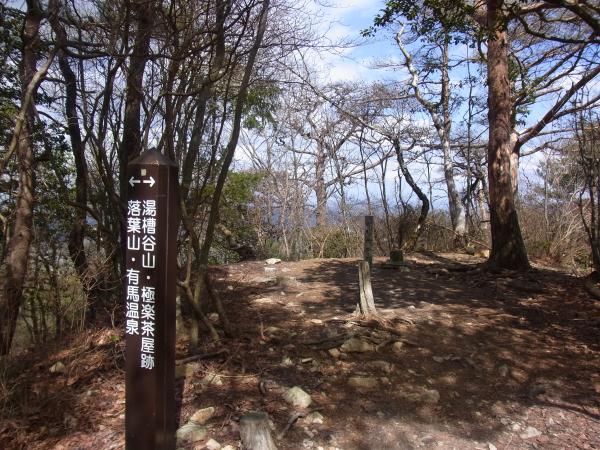 - 神戸電鉄 有馬口駅(20分)登山口(25分)猪ノ鼻小橋先の分岐(40分)仏谷峠(15分)高尾山(15分)湯槽谷山(30分)灰形山(20分)落葉山手前の分岐(10分)有馬温泉街