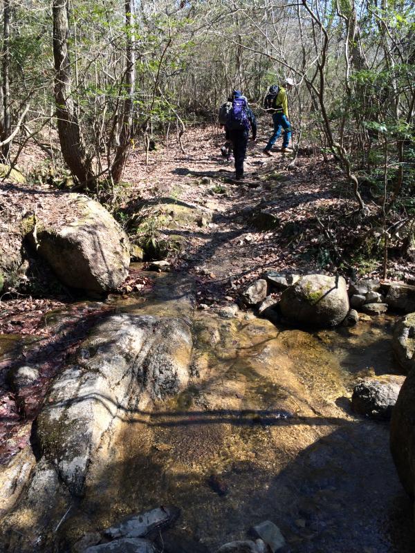 - 上桐生キャンプ場駐車場(25分)→落ヶ滝(90分)→天狗岩(15分)→耳岩(40分)→水晶谷(30分)→上桐生