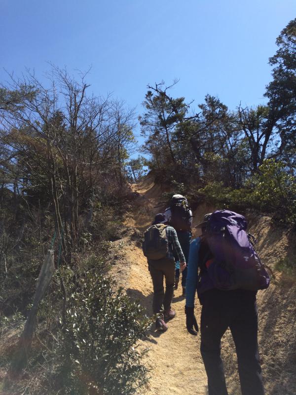 下山途中に砂地で結構つるっと滑りそうな所があるのですが、そこはロープを使ってスルスルと下りました。